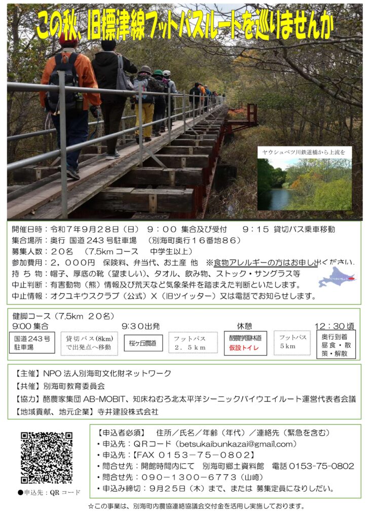 奥行臼散策デー~旧標津線フットパスのお知らせ
